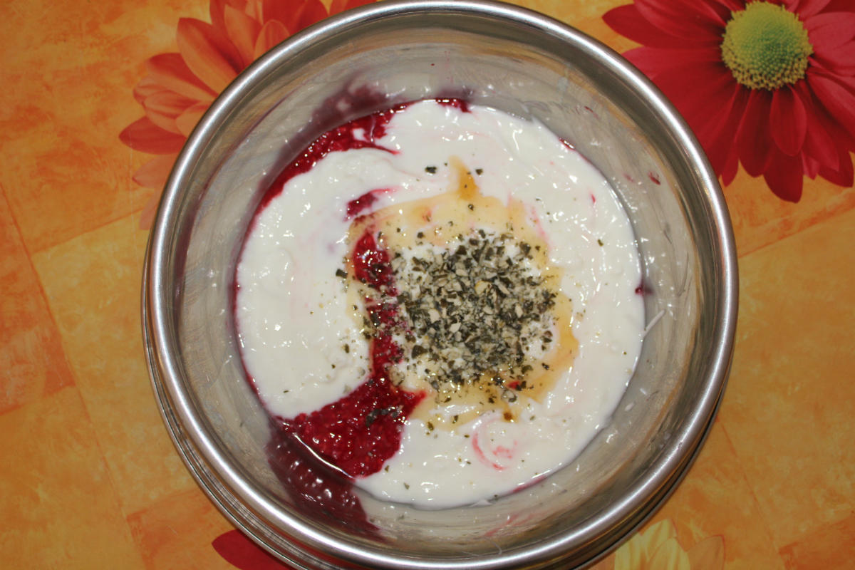 1) Holandský bílý jogurt, maliny, dýnové semínko, med 2) Drůbeží mleté, mrkev, červ.řepa, hláv.salát, sensitive,