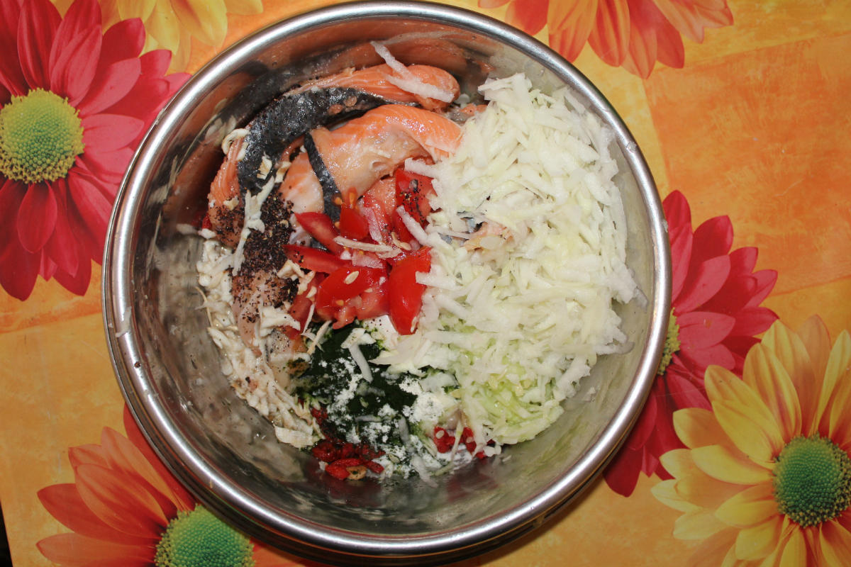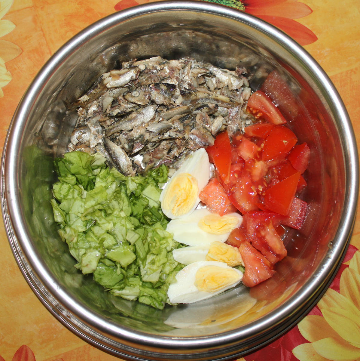 9) Svačina: Sardinky v oleji, hlávk.salát, rajče, vejce 10) Vepř.hrub, pangasius, ředkvička, mrkev, rajče,